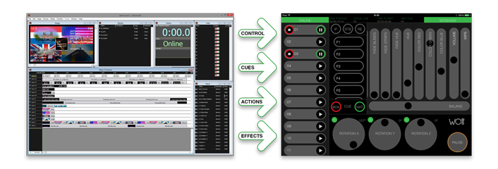 A really nice tool for presenters, WATCHOUT™-operators & VJ's. Create a show and every cue, action and fx is available in WO! remote. |